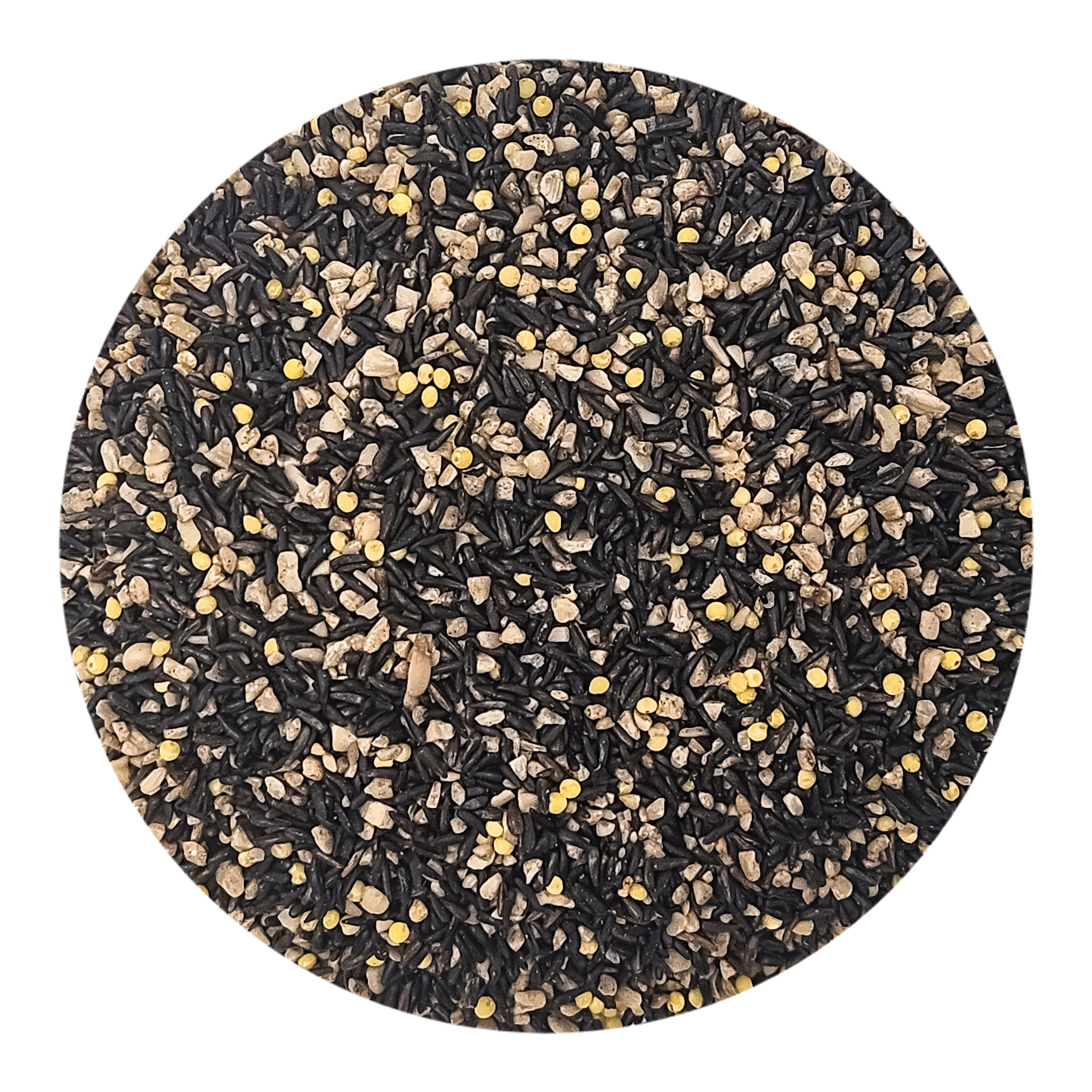 Nyjer Thistle, Fine Sunflower Chips, Hulled White Mullet